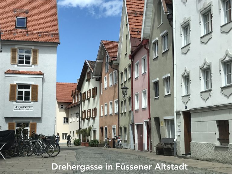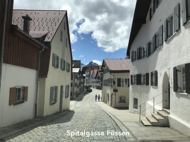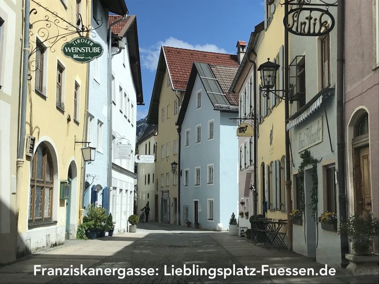 No matter whether you arrive by train or by car via the A7, both the Füssen train station and the “City-Parkgarage P5” car park (car entry: Theresienstreet) are about 200-300 meters away from Lieblingsplatz vacation home. Since our house is located beautifully and quietly in the pedestrian zone of Füssen’s old town, here are directions on how to get there by car so you can load and unload your car directly in front of the house at Schrannengasse 6.